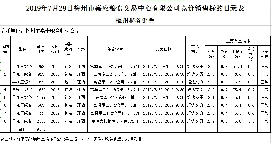受客戶委托,梅州市嘉應(yīng)糧食交易中心有限公司定于2019年7月29日(星期一)舉辦糧食競價交易會,梅州市嘉泰糧食收儲公司擬銷售2016年、2017年早秈稻9390噸。