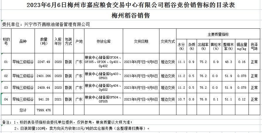 受客戶委托,梅州市嘉應(yīng)糧食交易中心有限公司定于2023年6月6日(星期二)舉辦糧食競價交易會。興寧市齊昌糧油儲備管理有限公司擬銷售2020年、2021年早秈稻7999.476噸。