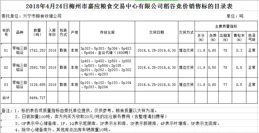 受客戶委托,梅州市嘉應(yīng)糧食交易中心有限公司定于2018年4月24日(星期二)舉辦糧食競價(jià)交易會(huì),興寧市糧食收儲(chǔ)公司擬銷售早秈稻8464.727噸。